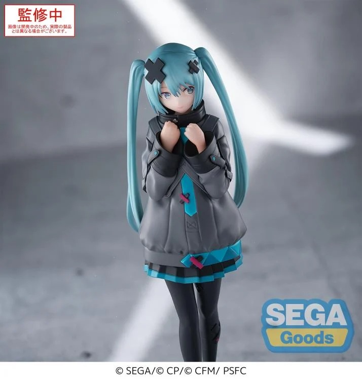 From the “Project SEKAI: Colorful Stage! feat. Hatsune Miku” game comes this striking Luminasta figure of Miku from the “Shuttered SEKAI” arc. Dressed in a layered hoodie and skirt with signature turquoise and black palette and melancholic expression, this figure captures the emotional depth of the story. Manufactured by SEGA.